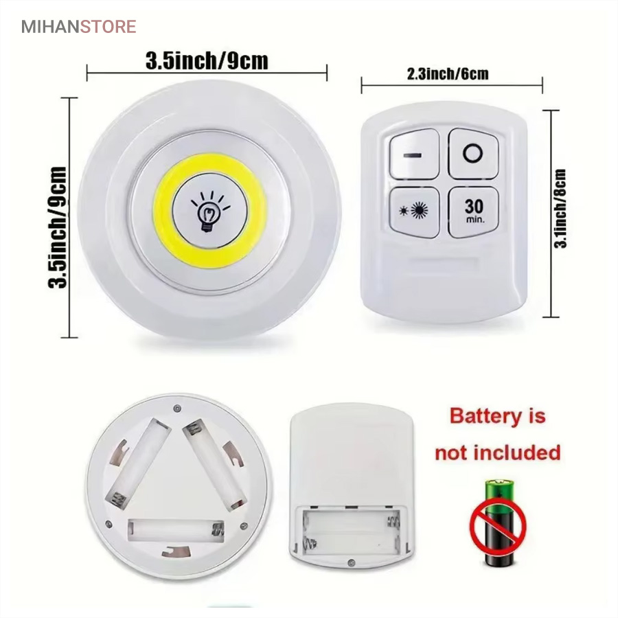 چراغ‌ها با استفاده از کنترل از راه دور با برد ۵ تا ۱۰ متر یا به صورت دستی از طریق فشردن قسمت مرکزی هر چراغ روشن و خاموش می‌شوند. در نتیجه حتی اگر چراغ در مکان مرتفع یا دور از دسترس نصب شده باشد به‌راحتی می‌توان از راه دور آن را کنترل کرد. طراحی بدون سیم باعث شده است که این چراغ‌ها برای نصب در هر مکانی مناسب باشند. نیازی به هیچ‌گونه سیم‌کشی یا اتصال برق نیست؛ تنها کافی‌ست ۳ عدد باتری AAA (برای هر چراغ) تهیه کنید و آن را در جای دلخواه بچسبانید.
